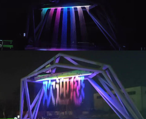数字水帘是一款用流动水构成并且能实现水雕刻的水帘,以水来呈现各种文字和图案,达到声、光、色、形俱美,为观众带来奇妙的观感