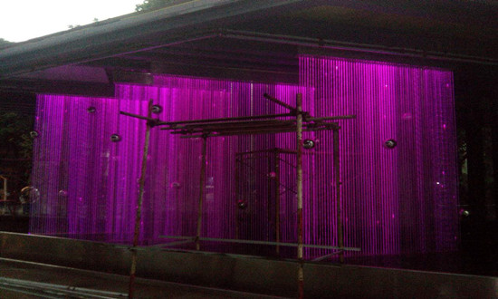 光纤水帘主要是依靠光纤纤体的自身而发出光的,它自己可以达到光彩怡人的效果的,也可以在上面投射灯光投影